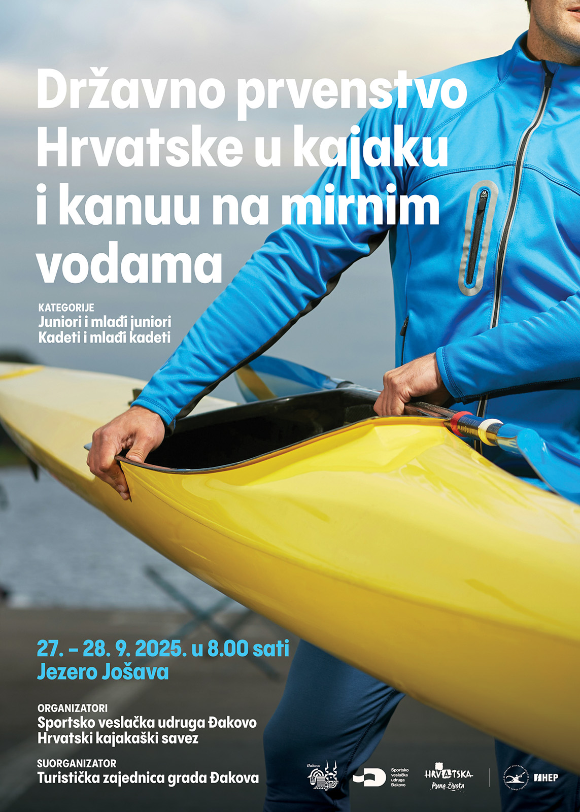 Najvažnije nacionalno natjecanje u organizaciji Hrvatskog kajakaškog saveza i Sportsko - veslačke udruge Đakovo stiže u slavonski kraj! Na jezeru Jošava u subotu i nedjelju 27. i 28. rujna od 8:00 sati kroz cijeli dan očekuje se 200 do 250 sportaša iz 12 do 14 klubova iz cijele Hrvatske, koji će se boriti za titule državnih prvaka.