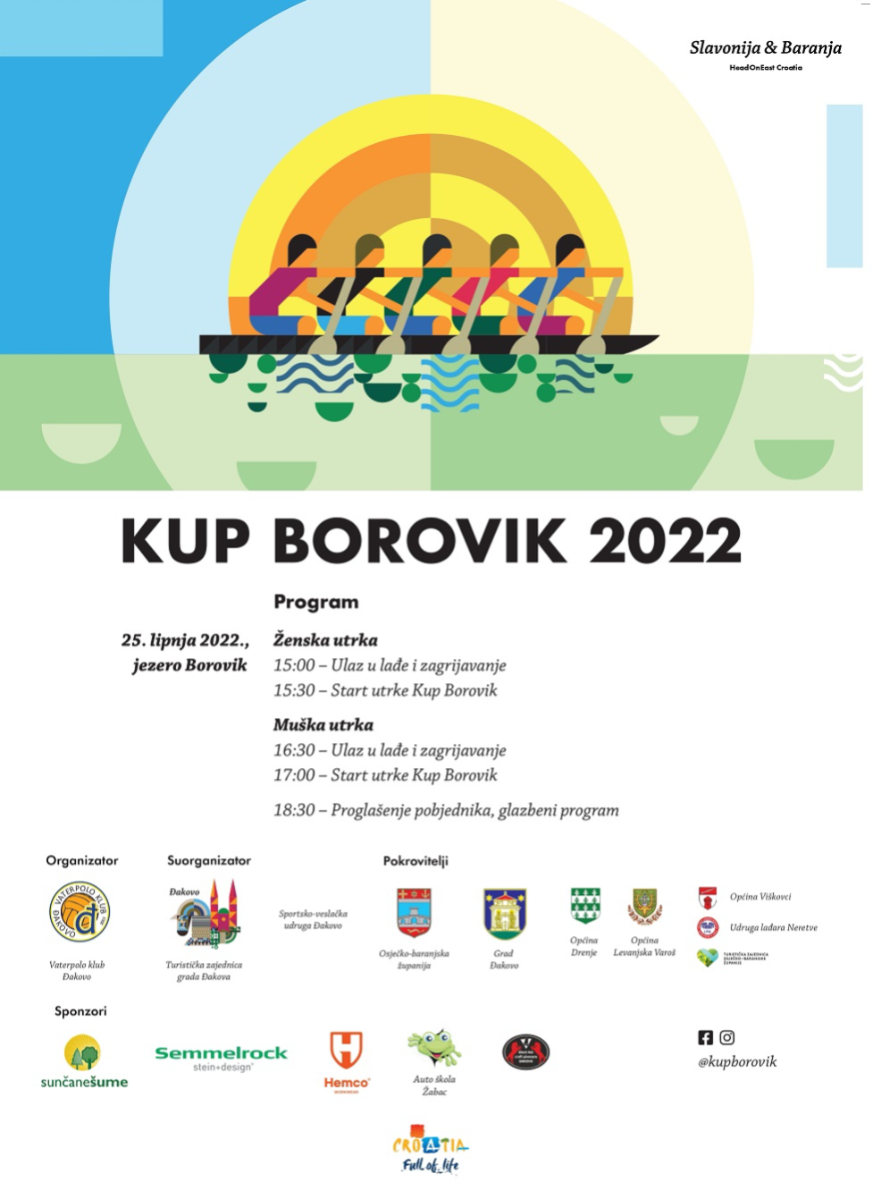 Drugi po redu Kup Borovik održati će se 25.6.2022. godine na akumulaciji Borovik. Osim utrke veslača koja će ove godine brojiti 15 ekipa, održati će se i utrka veslačica na kojoj će sudjelovati 4 ekipe. Veslači će opet odmjeriti snage u utrci dužine cca 10 km, dok će se veslačice natjecati u utrci dužine cca 5 km.