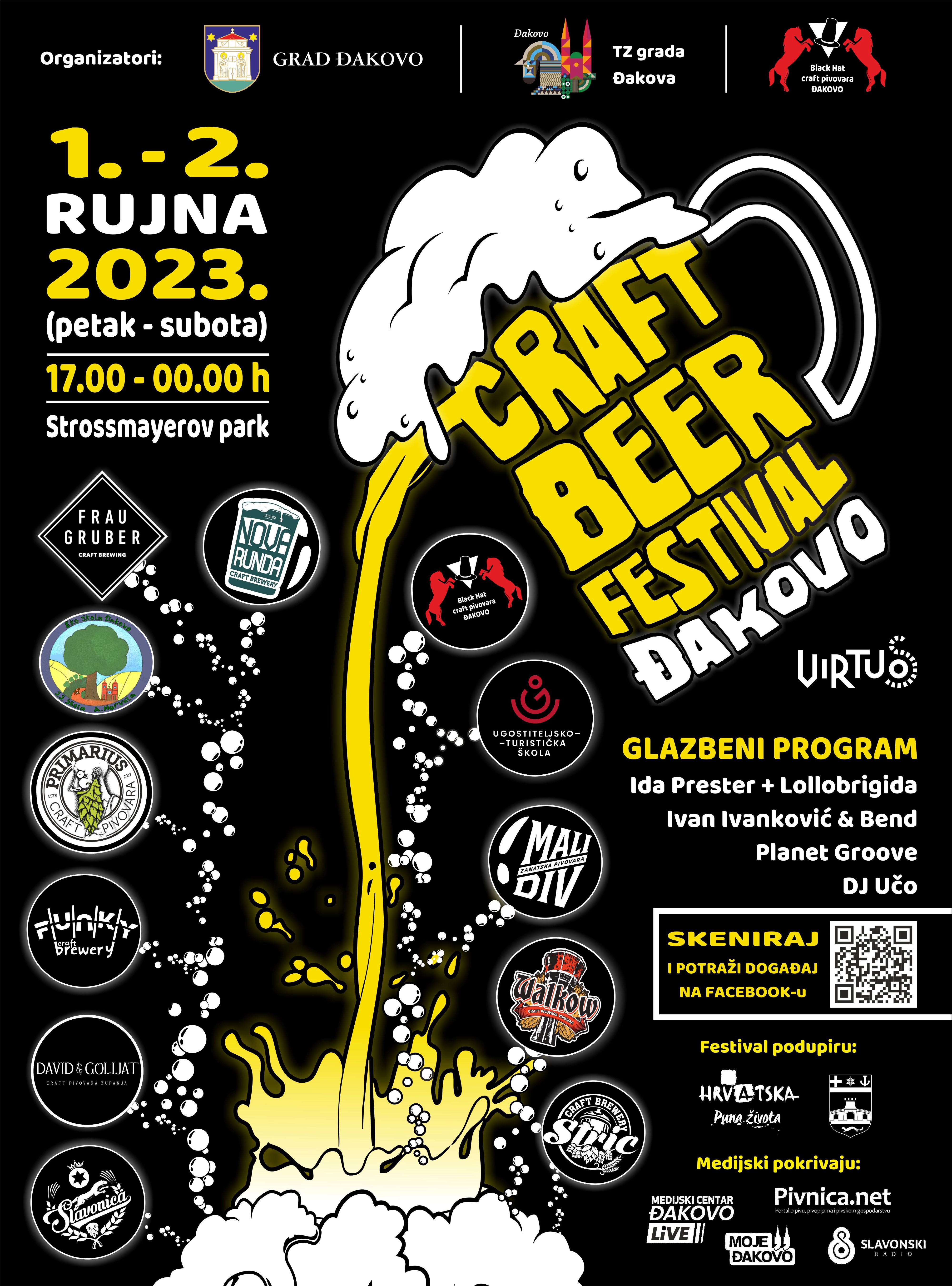 Đakovo Craft Beer festival se održava 1. i 2. rujna 2023. u sklopu programa Đakovačkog ljeta. Festival će se održavati dva dana u Strossmayerovom parku, od 17:00 do 00:00 sati. Organizatori festivala su Grad Đakovo, Turistička zajednica grada Đakova i Black Hat craft pivovara Đakovo. Festival podupiru Osječko-baranjska županija i Hrvatska turistička zajednica.