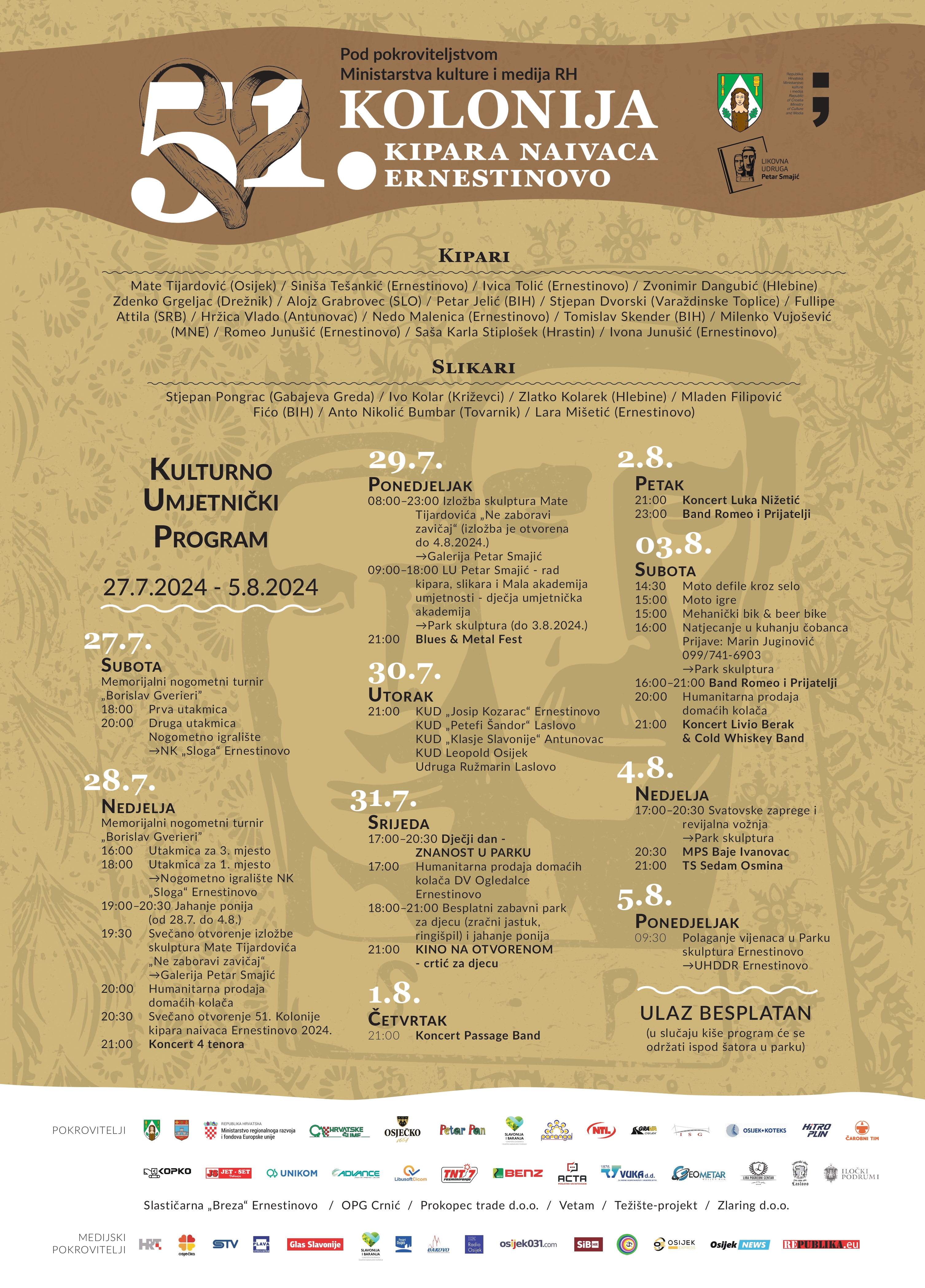 51. Kolonija kipara naivaca Ernestinovo održava se od 27.7.-5.8.2024. godine