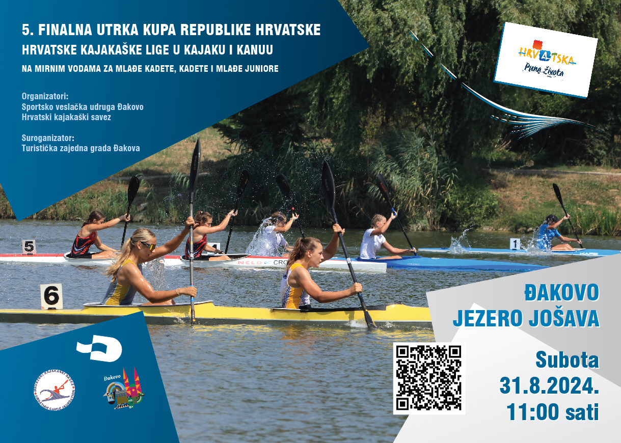 5. finalne utrke Kupa Republike Hrvatske - Hrvatske kajakaške lige u kajaku i kanuu na mirnim vodama za mlađe kadete, kadete i mlađe juniore održat će se 31. kolovoza 2024. godine na Regatnoj stazi jezera Jošava kod Đakova s početkom u 11:00 sati.