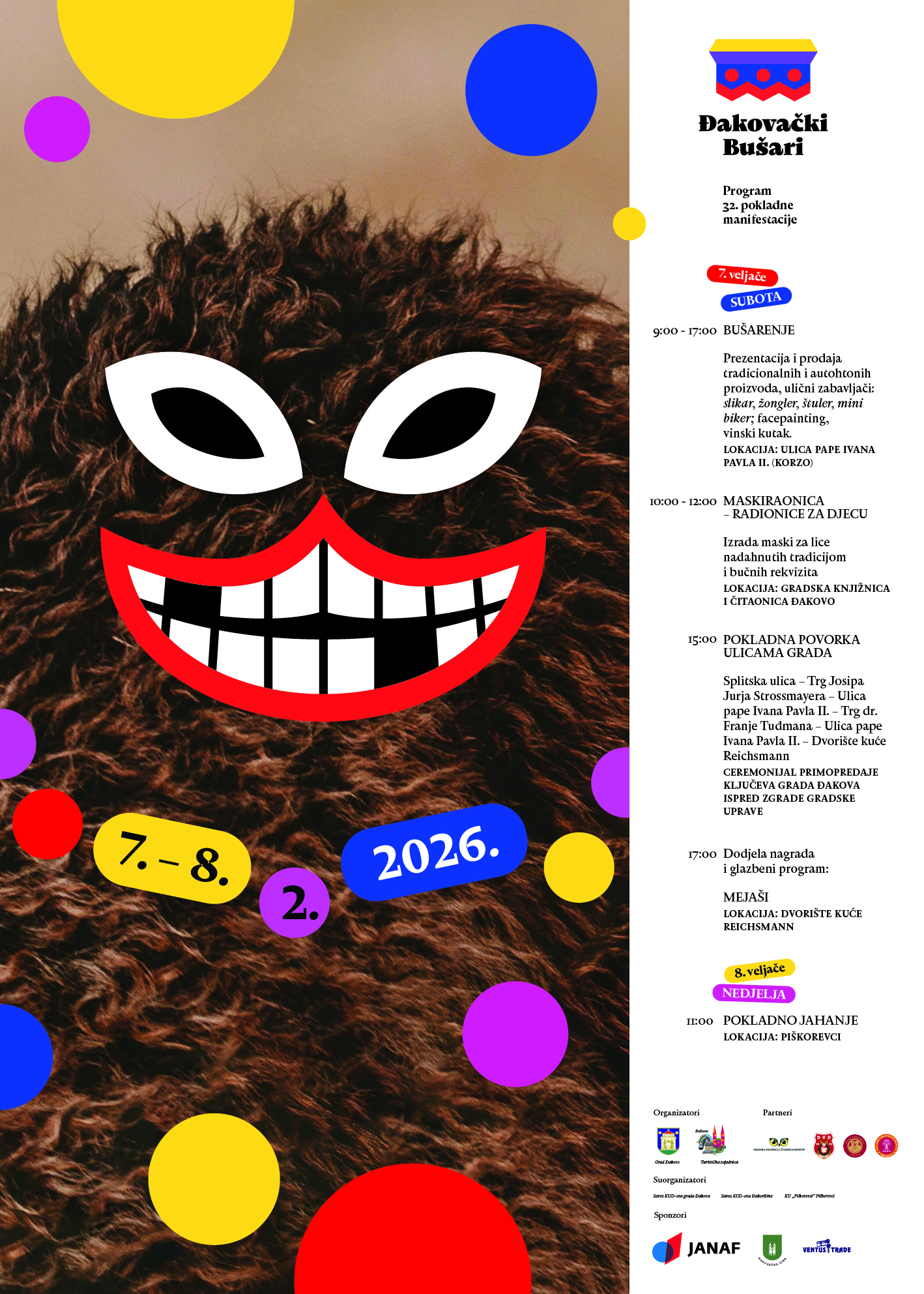 S velikim zadovoljstvom najavljujemo 32. Đakovačke bušare - pokladnu manifestaciju koja će se održavati od 7.-8. veljače 2026. godine.